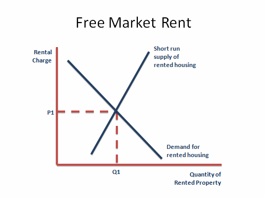 Rental housing follows the same basic laws of economics as other consumer goods: when the demand consistently exceeds the supply, prices will rise until the quantity supplied expands to equal the amount demanded. As shown in the chart below, the resulting equilibrium occurs at a price (P1) where the supply (Q1) meets demand (see Figure 1).
