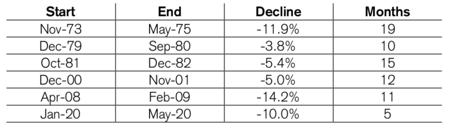 TABLE A: HISTORICAL SHARP DECLINES IN GLOBAL INDUSTRIAL PRODUCTION