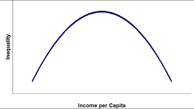 In the 1950s, the American economist and statistician Simon Kuznets, as a result of his work on economic growth and income distribution, developed the Kuznets curve: a model which posits that as an economy develops, inequality first increases and then decreases. It was first proposed in a 1955 seminal paper. This hypothesis is expressed on a graph of inequality plotted against income (or GDP) per capita and forms an inverted U-shaped curve, as is shown by the diagram below. This article aims to examine the justifications for this hypothesis, why it might be flawed, as well as the lessons one can learn from it.