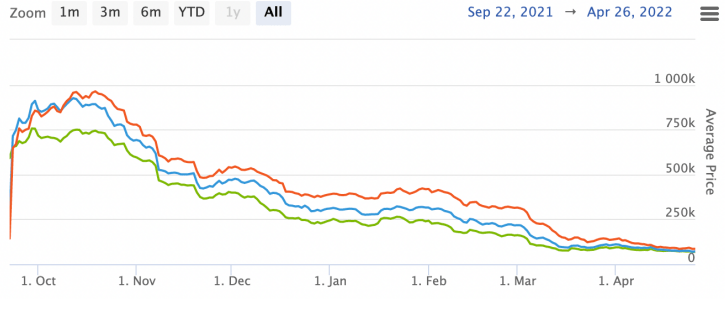 As shown in the graph above, the value of cards bought inevitably declines as better cards are issued. This works as the immediate desire of the player to be competitive outweighs their long-term rational optimisation.