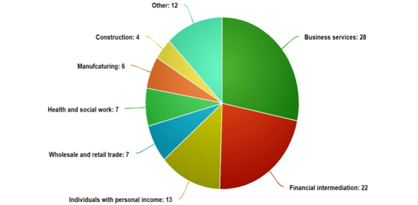 Figure 2: Breakdown of individuals with income over £150,000 by sector (%)
