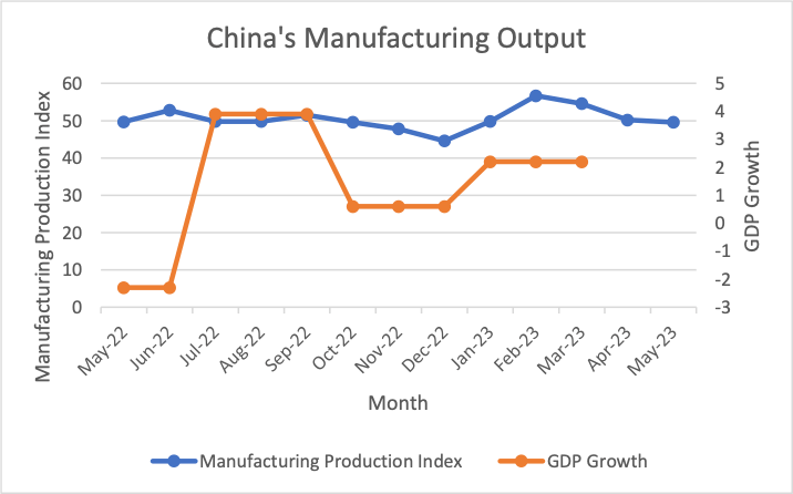 June’s Chart of the Month highlights the stagnation in China’s manufacturing output after the pandemic.