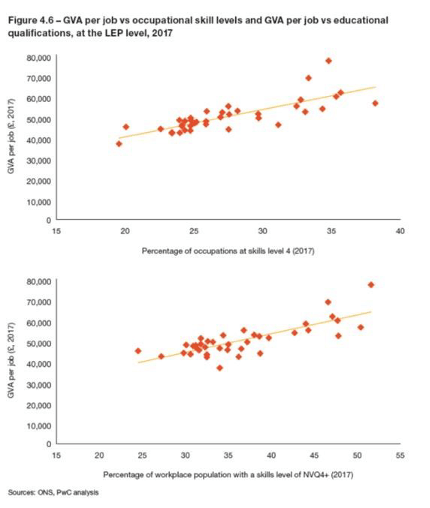 Figure 2 – PwC graph showing strong positive correlation between skill levels and increased productivity