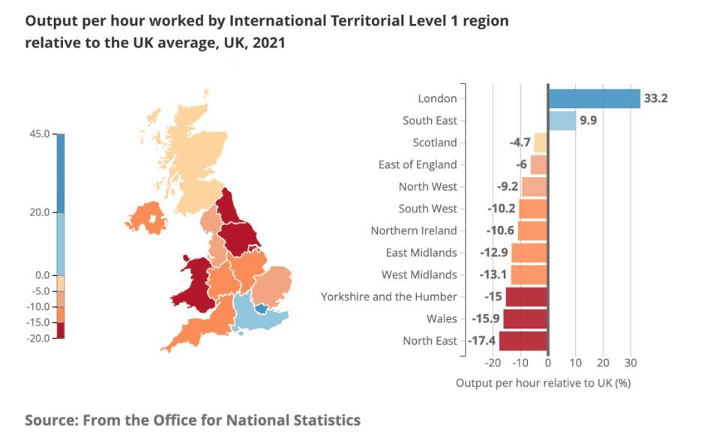 Graph showing disparities in productivity across UK
