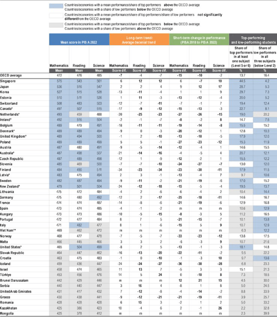 PISA rankings 2022, showing the UK has high levels of tertiary education, thus the issue lies elsewhere, Source OECD