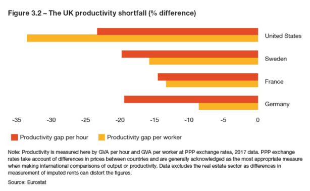 Figure 1 – Graph showing how much less productive the UK is than other developed economies
