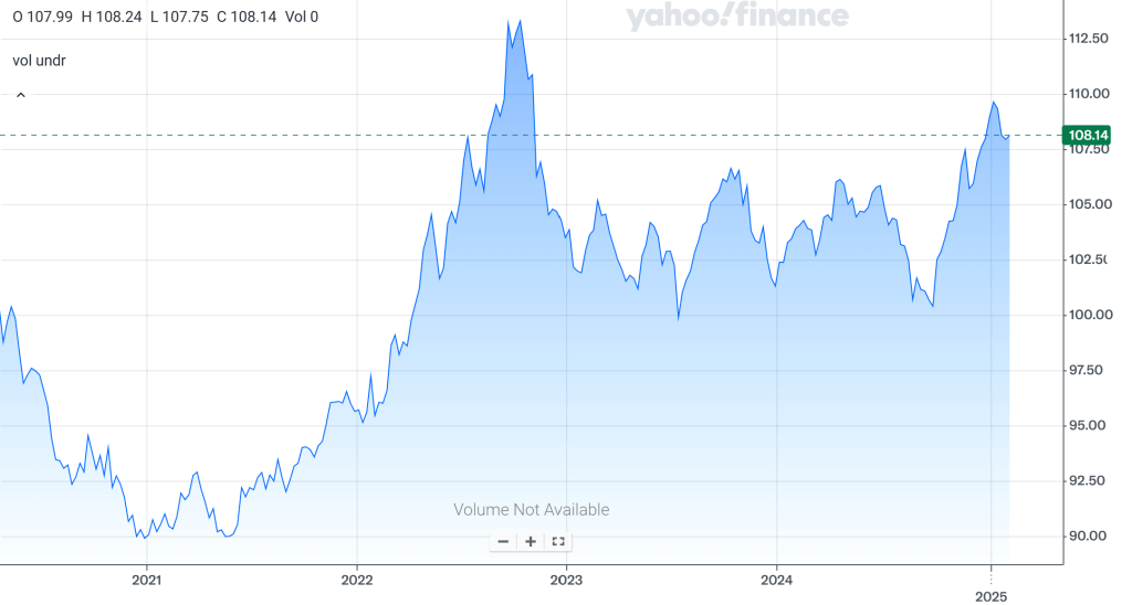 Key Picture 2: Five Year Chart of the US Dollar Index