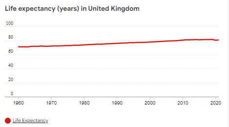 The first thing people might argue is that the world is different from 1948. Universal health care no longer works. People are living longer. Britain’s population is increasing in both number and age. This argument on first inspection seems valid, but the NHS has had to deal with these problems for decades, yet it could handle these changes. The fertility rate in the UK has remained fairly constant since the 1980’s (Figure 2), and the life expectancy hasn’t grown for the last decade, and before that, had been growing at a constant rate for the last 50 years (Figure 3). Immigration has been proven to add more to the NHS than it takes out. Further, the argument that the NHS costs too much is arguably untrue. The UK spends around five and a half thousand dollars per person per year on healthcare – lower than France and Germany, and half of what America spends.