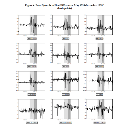 The crisis also had widespread effects on international markets. For example, the Sovereign default was a major factor in the eventual collapse of the LTCM (Long Term Capital Management) hedge fund and requiring a $3.6 billion bailout from the US Government. This singular event, partially caused by the Russian crisis, then had a spill over into almost all world markets (which had already been heavily impacted the Russian crisis itself) as bond markets experienced severe fluctuations as spreads changed, as can be seen in the diagram below.