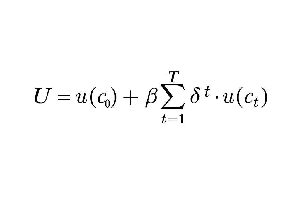 - β = present bias factor (extra discount on everything that’s not immediate)